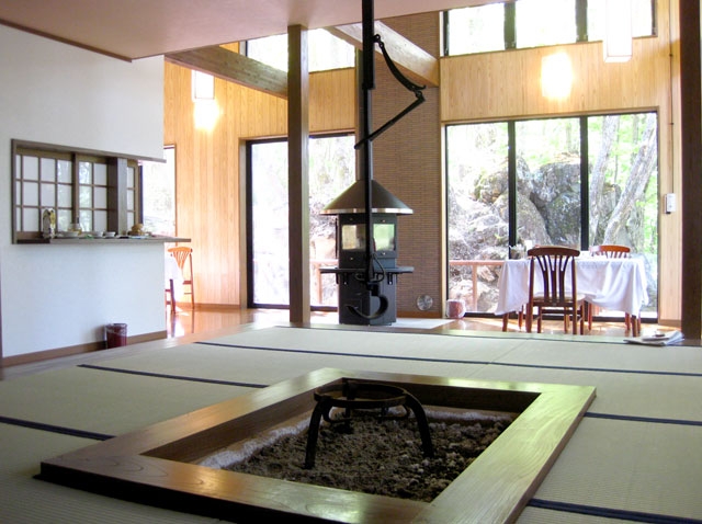 天然温泉風呂×2(鍵付き・貸切可能) 無線LAN完備 ダイニングルーム 囲炉裏のある畳部屋 テラス